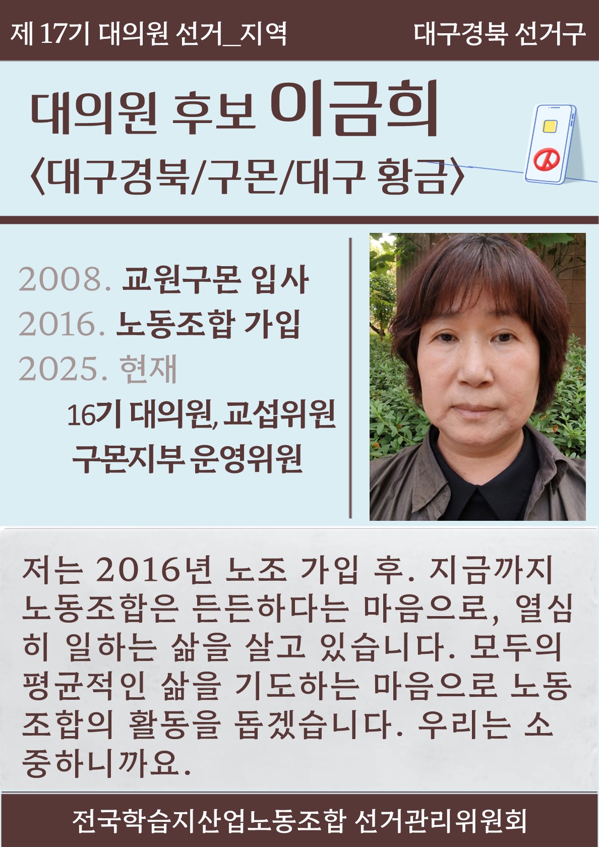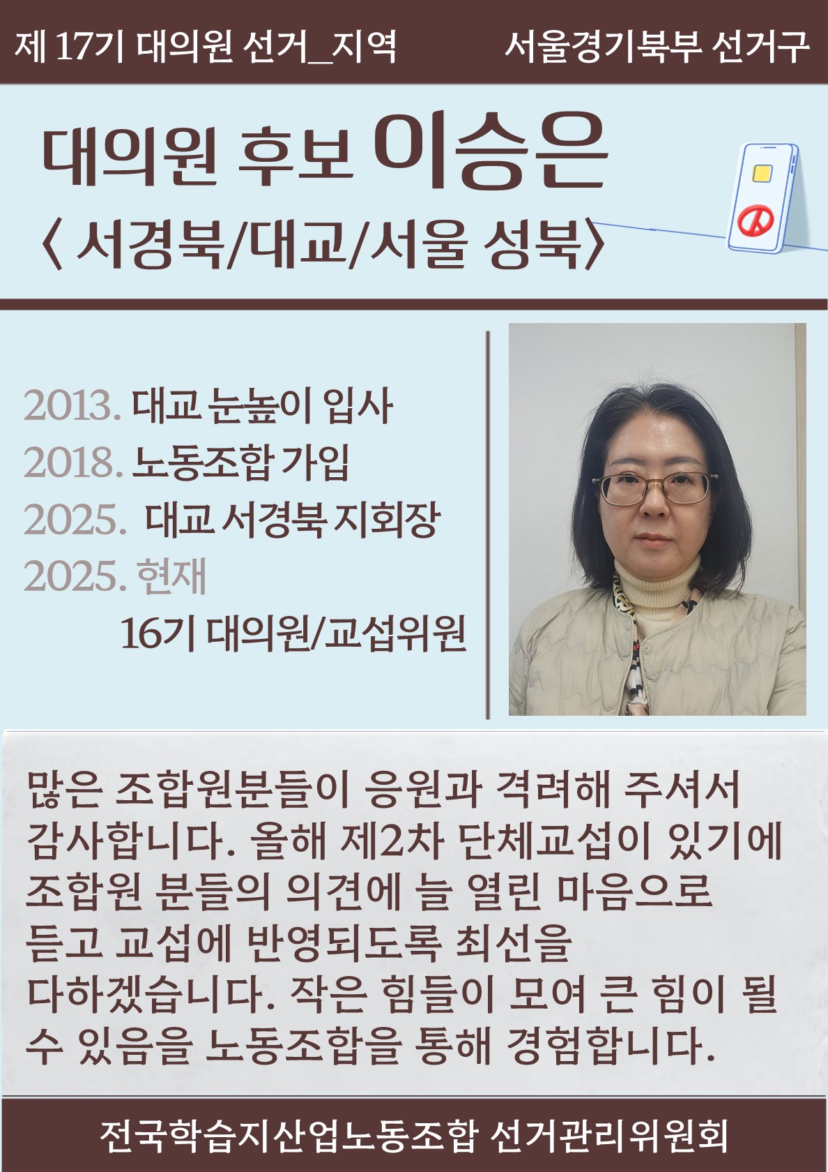 제 17기 대의원 선거의 각 지역 선거구 후보자 공보 및 선거 안내입니다.